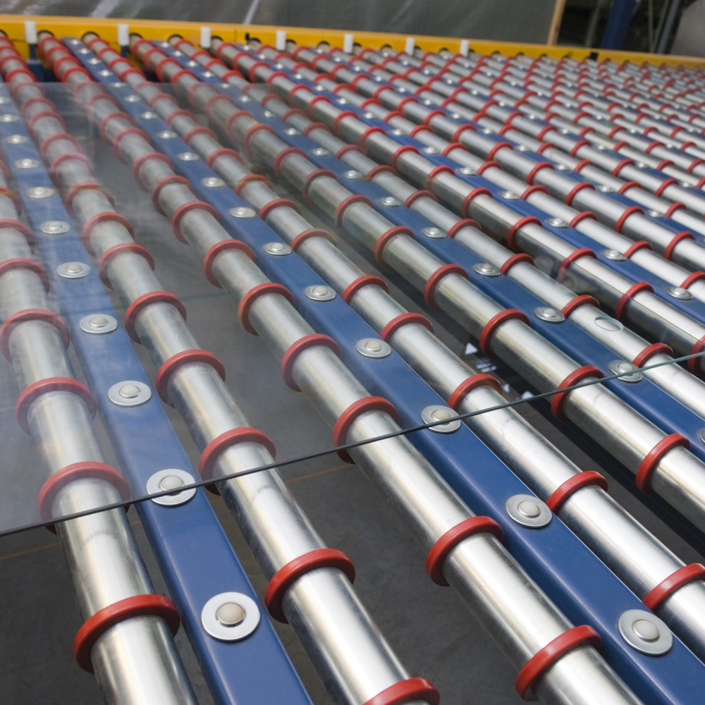 After cooled glass exits the lehr in this float glass manufacturer’s continuous process facility, the cold end team takes over. This requires careful inspection of the glass ribbon, scoring and snapping caps to precise measurements, and carefully conveying lites flawlessly throughout the process and into many packaging stations.